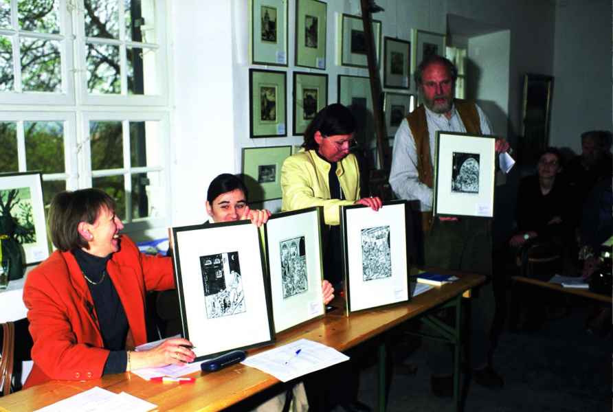 Für die erste Auktion stifteten private Sammler, Künstler und öffentliche Institutionen insgesamt 72 Kunstwerke von 48 Künstlern. Wolfgang Gerstner, der schon Erfahrung als Versteigerer bei einigen Wohltätigkeitsauktionen gesammelt hatte, konnte als Auktionator gewonnen werden. Zusammen mit dem Kunstsammler Josef Lochner legte er die Aufrufpreise fest. Mit viel Geschick und Geduld brachte er in der ersten Versteigerung am 26. März 2000 56 Kunstwerke an die Frau bzw. an den Mann. Den höchsten Erlös mit 5.000 DM erzielte das „Mädchen mit goldener Kette“ von Fred Arnus Zigldrum. Insgesamt kamen 22.350 DM zusammen.
